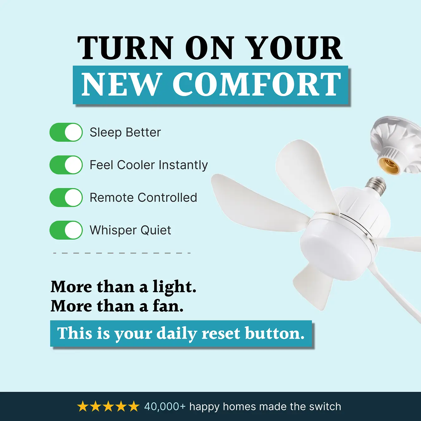 Breezjet™ - The Only Ceiling Fan That Installs Like a Light Bulb in 60 Seconds